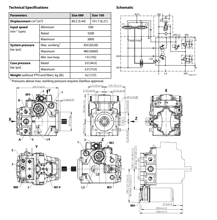 Фланец: на 4 болта ( ISO 3019-1, flange 127–4 (SAE C)