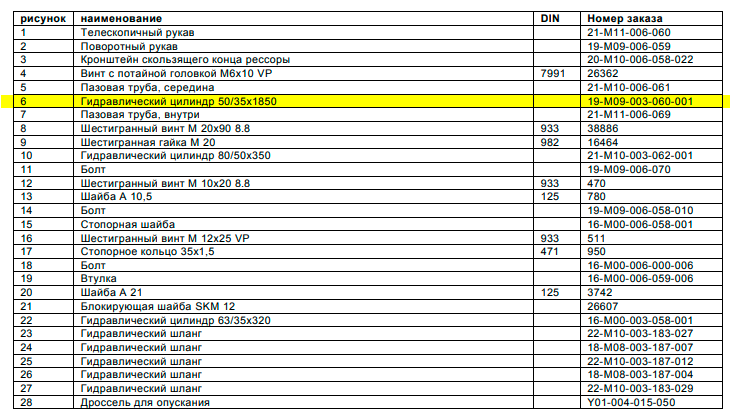 Гидравлический цилиндр 50/35х1850 19-M09-003-060-001