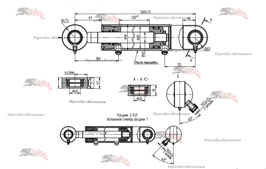 Подвод: 2 штуц. М22×1.5